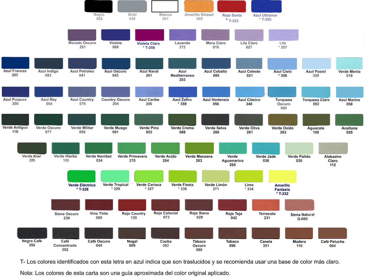 Carta de colores pinturas tropical acrilica - Imagui